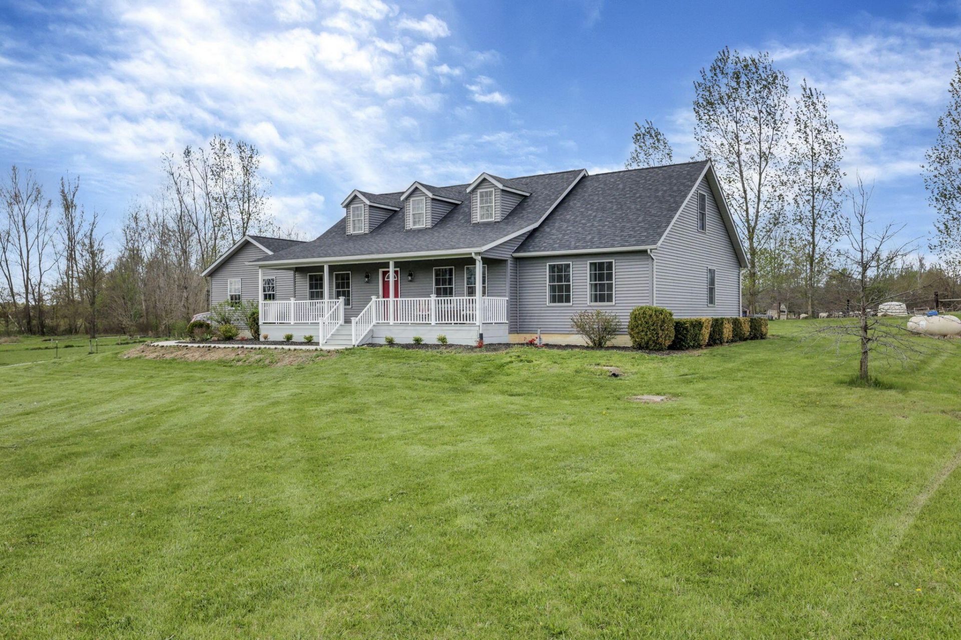 Stunning! Custom built w. sun-filled rooms, soaring ceilings & flowing floorplan situated on nearly 11 acres! Hobby-farm ready barn, gentle creek & daily wildlife sightings! Gourmet kitchen w. granite counters, tile backsplash, gas cooktop & stainless appliances, framed by rich cherry cabinetry that warms the space: perfect for canning marathons, holiday spreads & casual breakfasts after blackberry picking. Recent updates shine: brand-new roof under warranty, freshly painted inside & out, crisp new exterior lights, new concrete sidewalk & entertainment-sized concrete patio, new front porch & back deck railings, fresh landscaping, plus Pella windows. Practical perks include: 200-amp electric, well water, septic w. two leach fields. Loft dormer storage & generous closets keep life organized, while the versatile lower level flexes for gaming, canning, workshop or creative studio. Raise rabbits & chickens, try goats, calves or lambs in the barn, ride ATVs, hunt in season & watch eagles, fox & deer glide through at dusk. Friendly neighbors, quiet rural vibe, some w. horses, all w. helping hands. When it's time to play, you're close to beloved staples: Hartford Fair 'The Biggest Little Fair in the World,' WonderLights at the fairgrounds, Centerburg's Old Time Farming Festival, Johnstown Fireman's Festival, Utica Ice Cream Festival, Route 62 MX, Alum Creek Lake & State Park???plus Ye Olde Mill, Ariel‑Foundation Park, Fiesta Del Rio in Johnstown, Tanger, Polaris & Easton, w. easy access to I‑71, SR‑161, Granville, Mt. Vernon & Newark. Out back, unwind on the covered porch, step to the fresh‑railed deck or new patio, grill while the creek hums, stargaze under inky skies, build a fire, let kids & pups roam, plant gardens, pick berries & savor sunsets in your private slice of countryside. Clean lines, well-appointed finishes & a fantastic location!